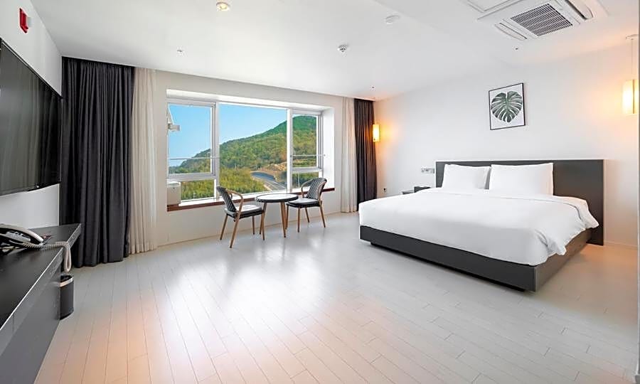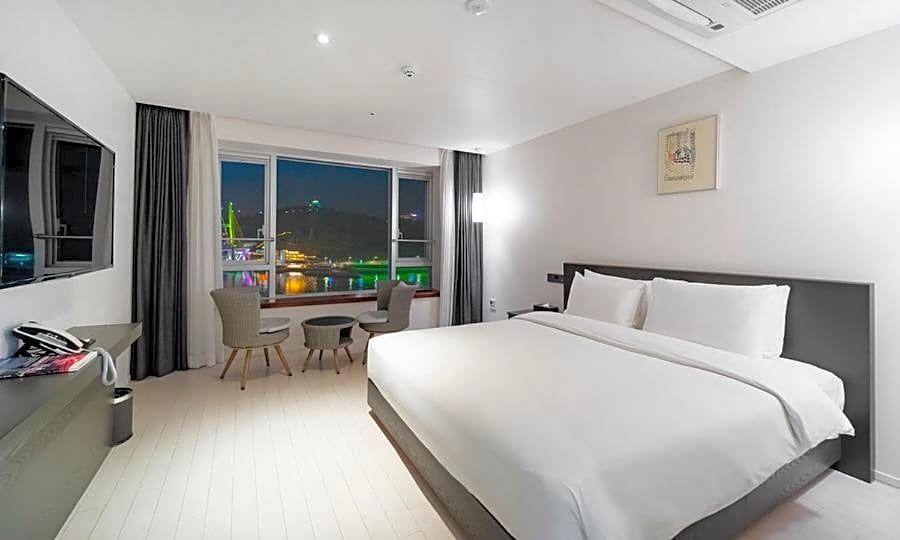 The double room features sea views. The unit offers 1 bed and 2 futons.